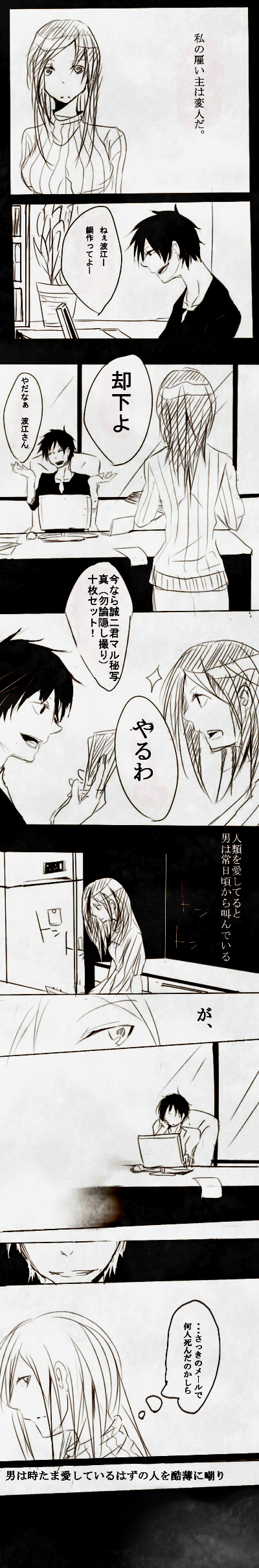 ・でも波江さんがしぶしぶ付き合ってくれたよ、よかったな臨也!